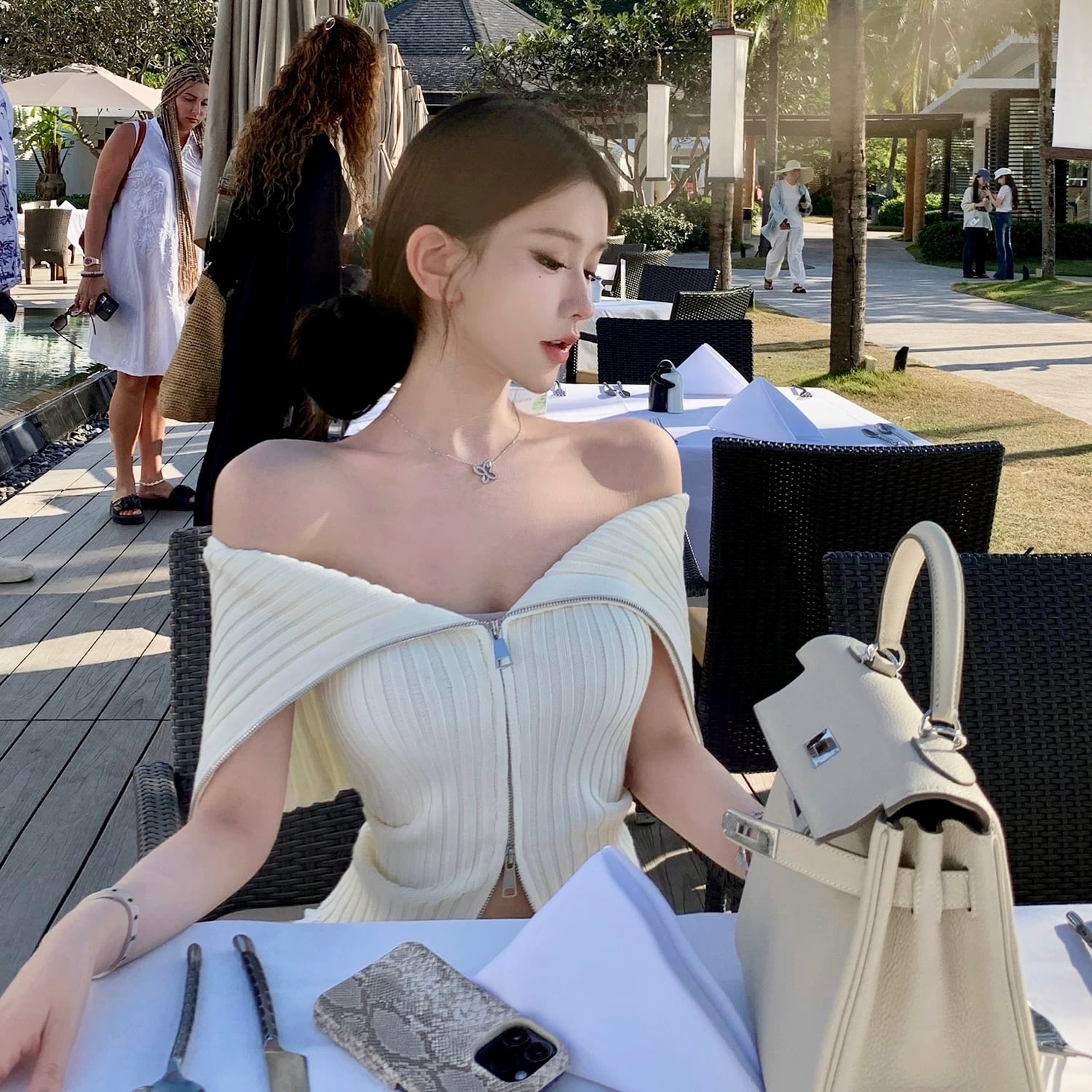 Off-shoulder knit tops