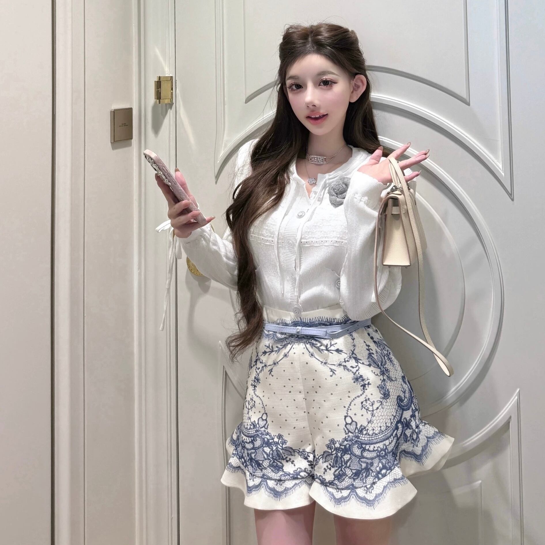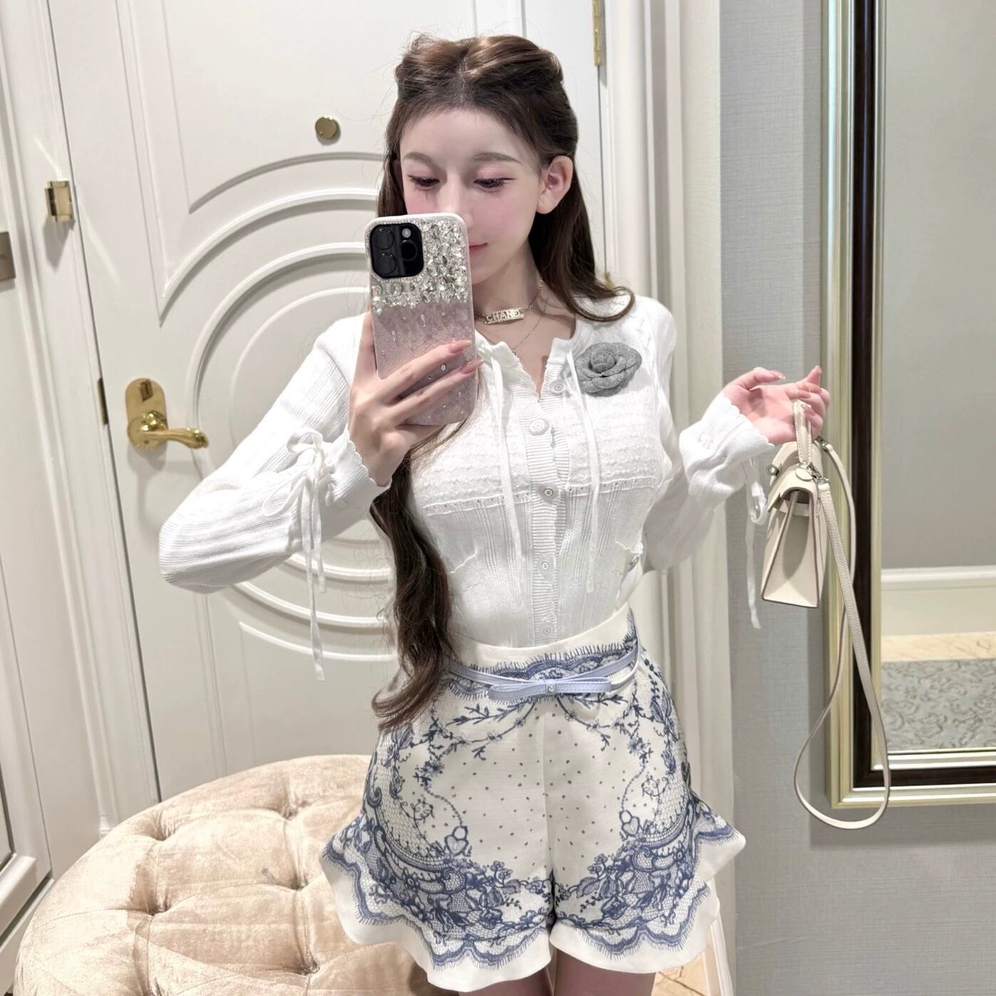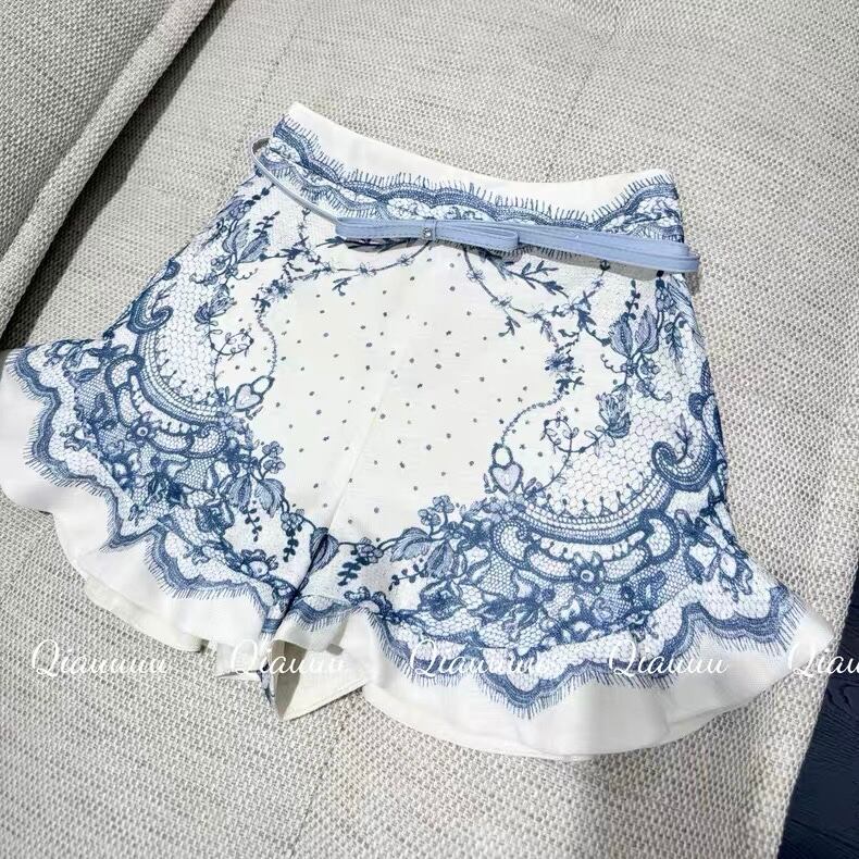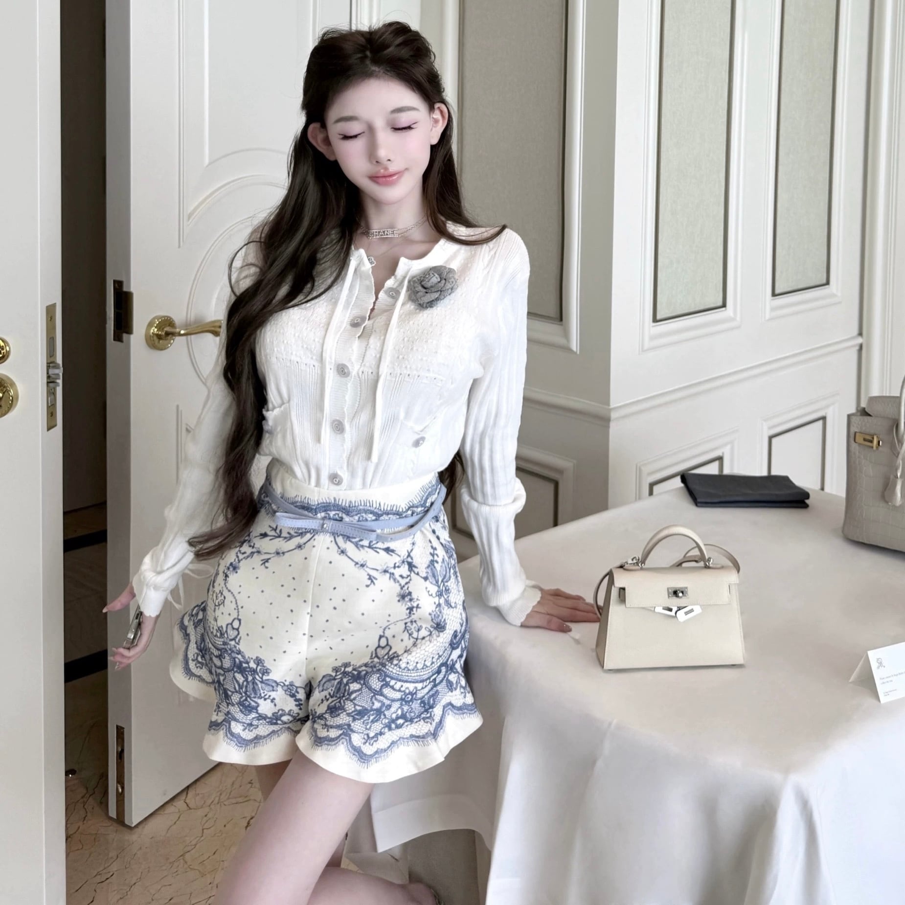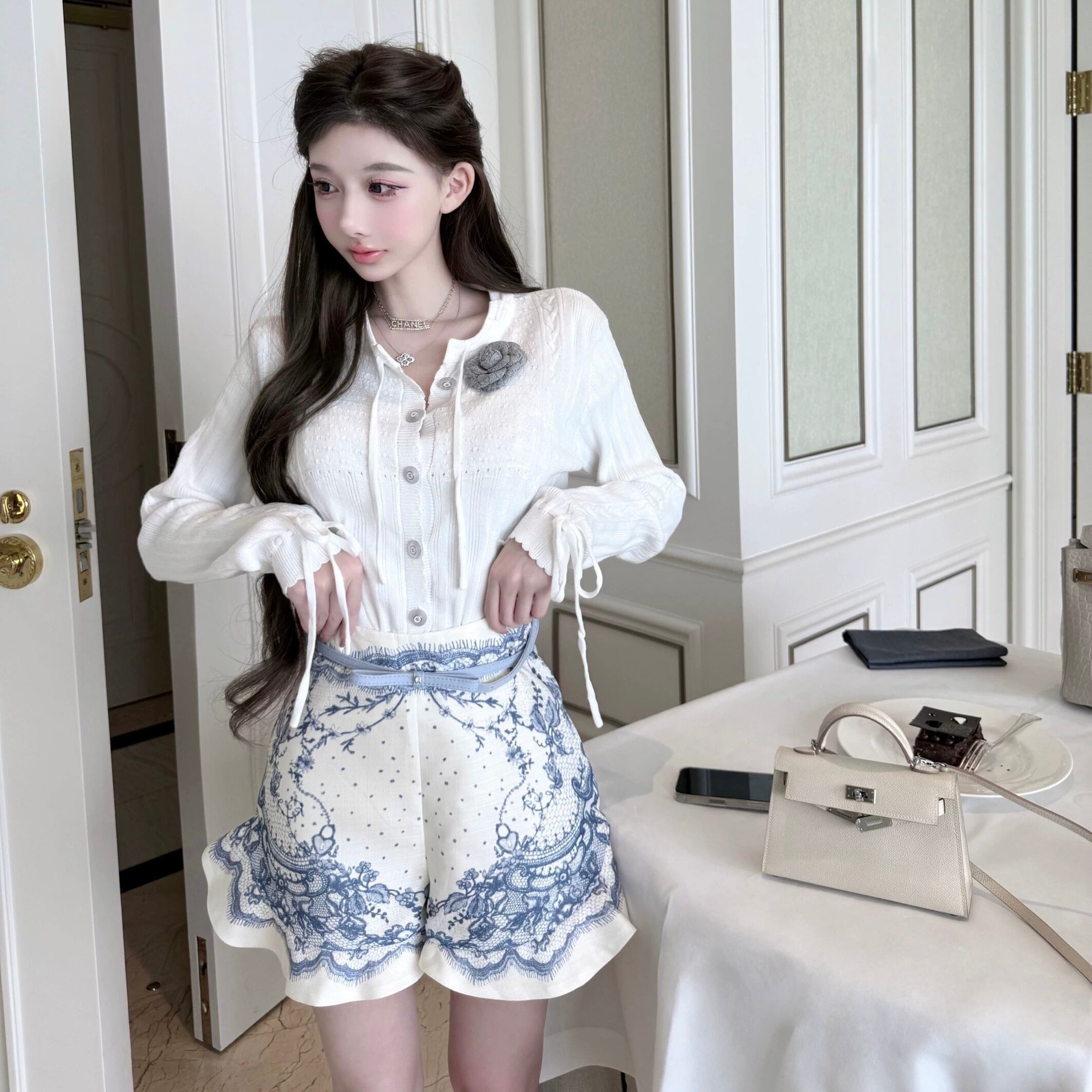 上品で華やかな印象を与えるハイウエストショートパンツ。