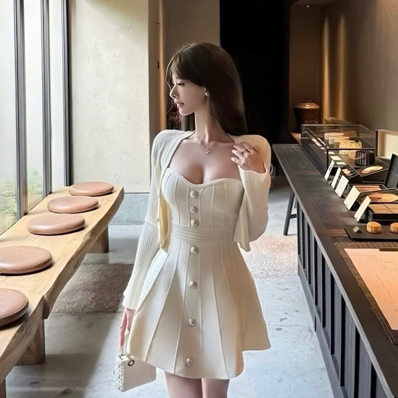one piece×cardigan two-piece
