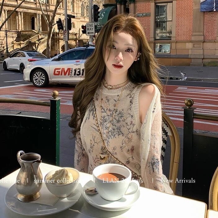embroidery no sleeve knit
