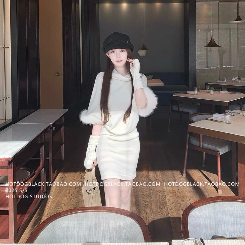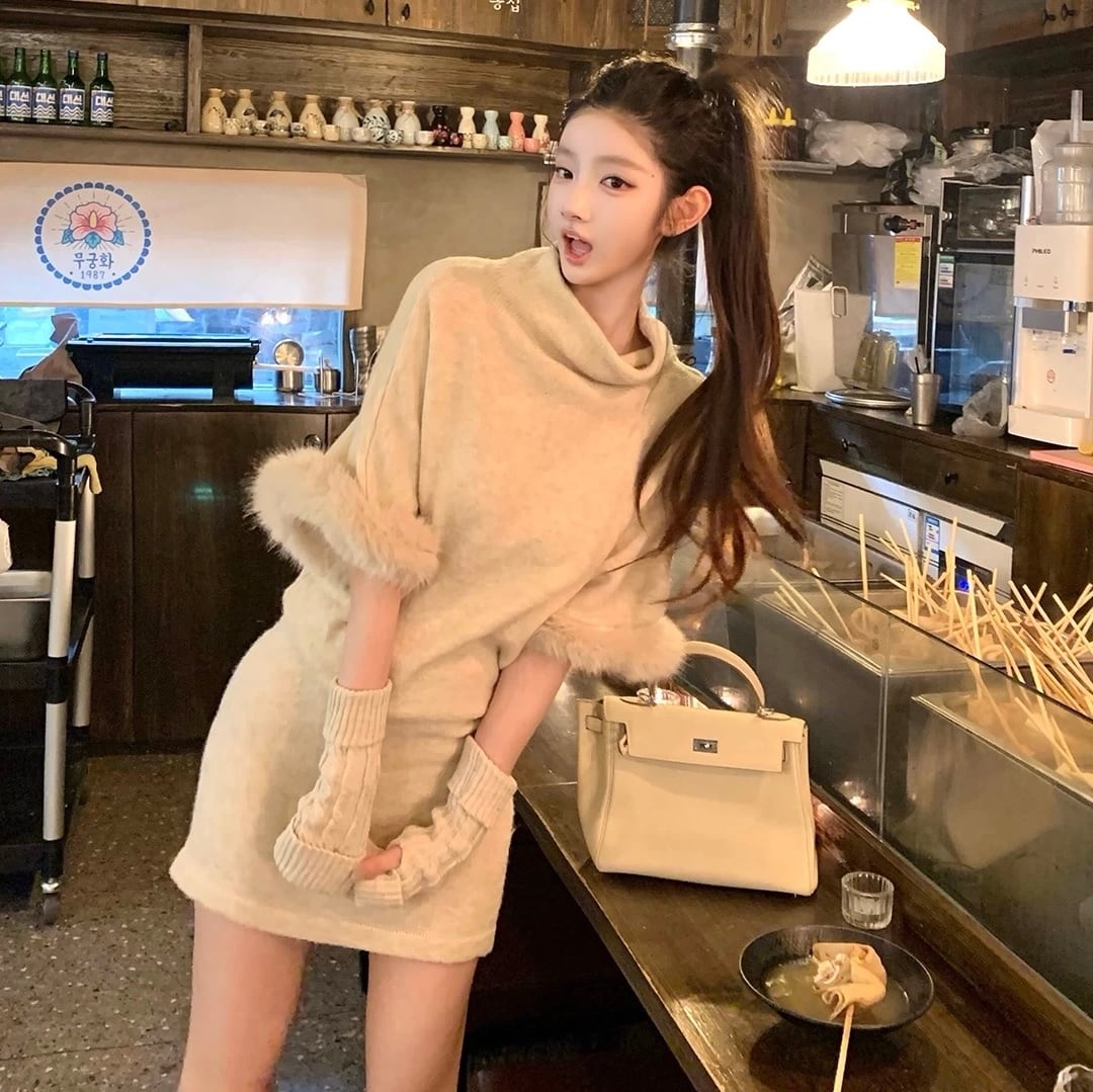 fur arm warmer knit one piece