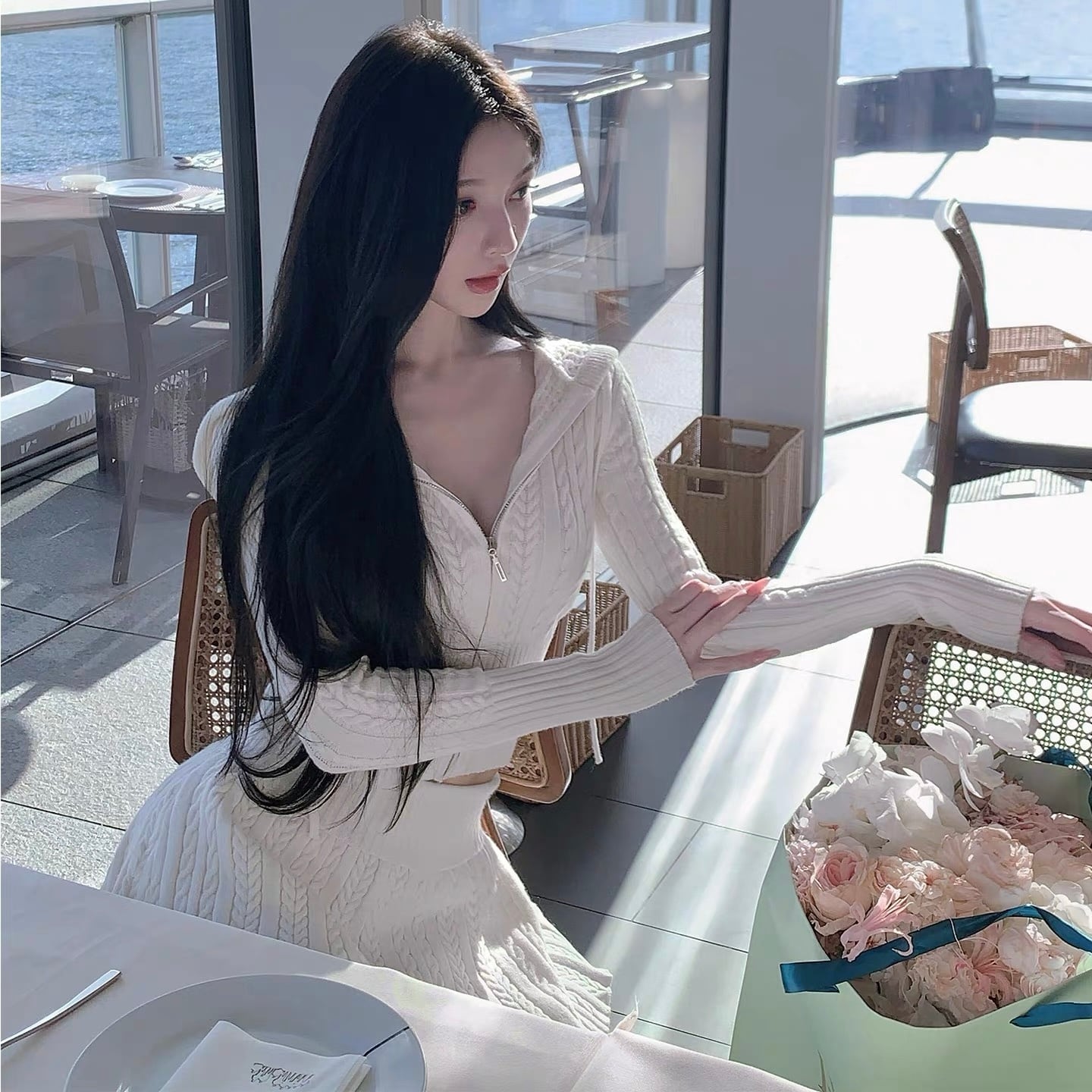 cable knit hoodie setup