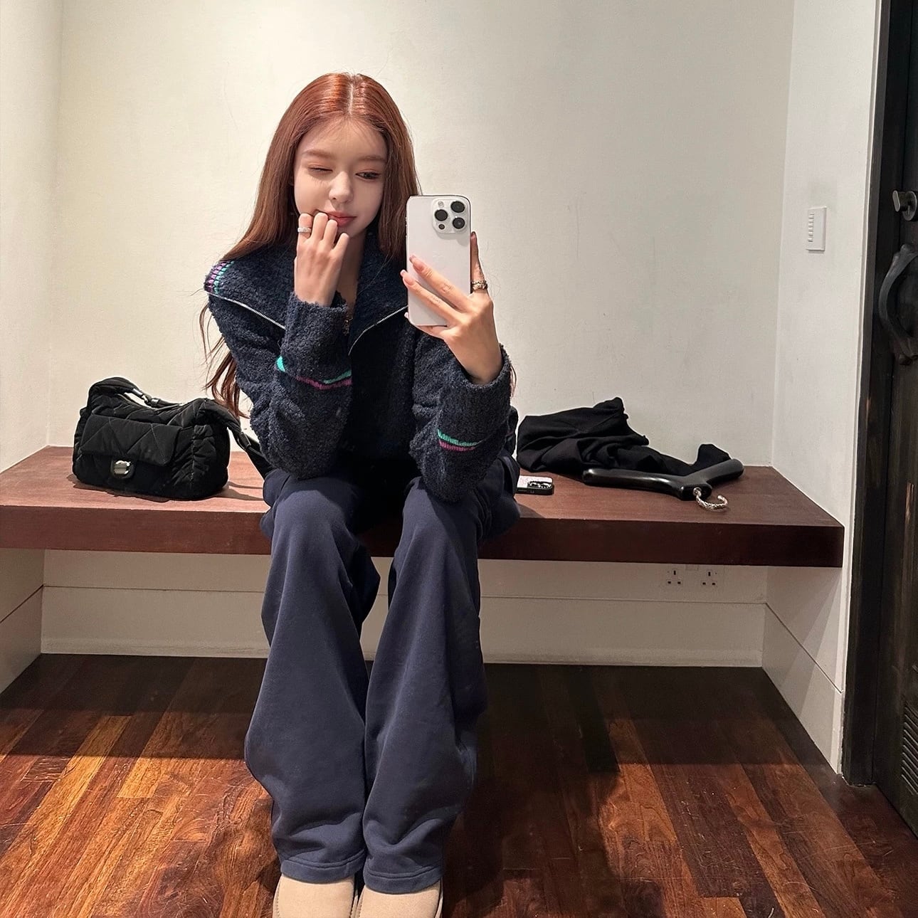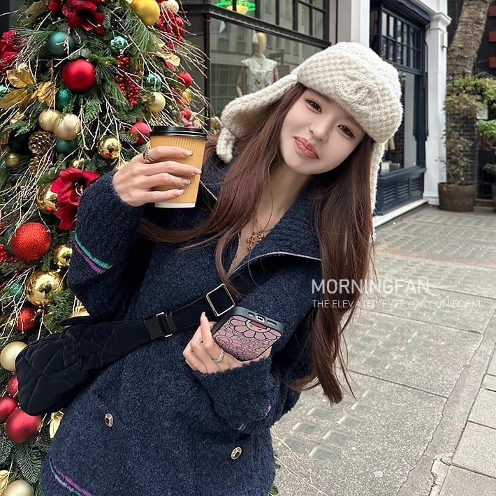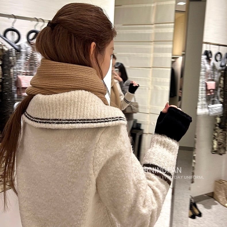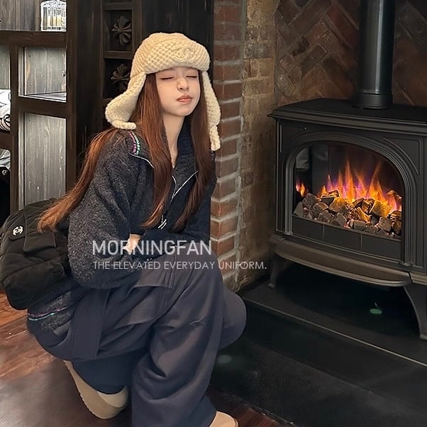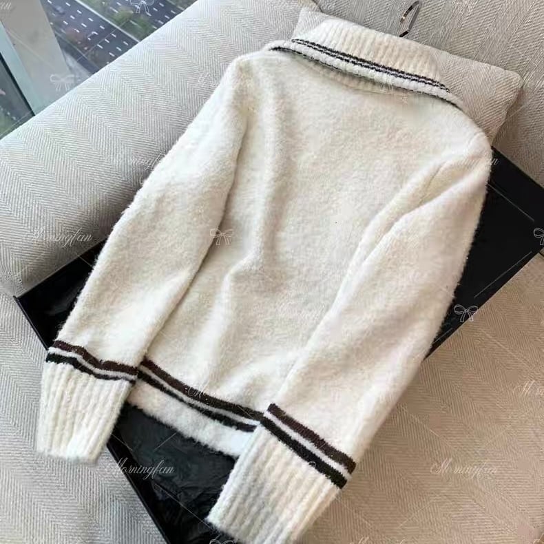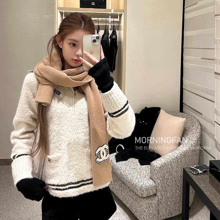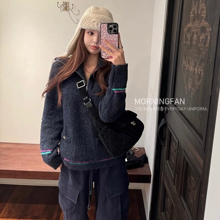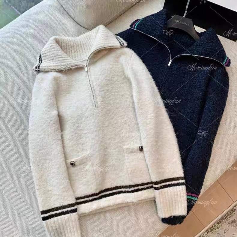 piping zipper knit tops