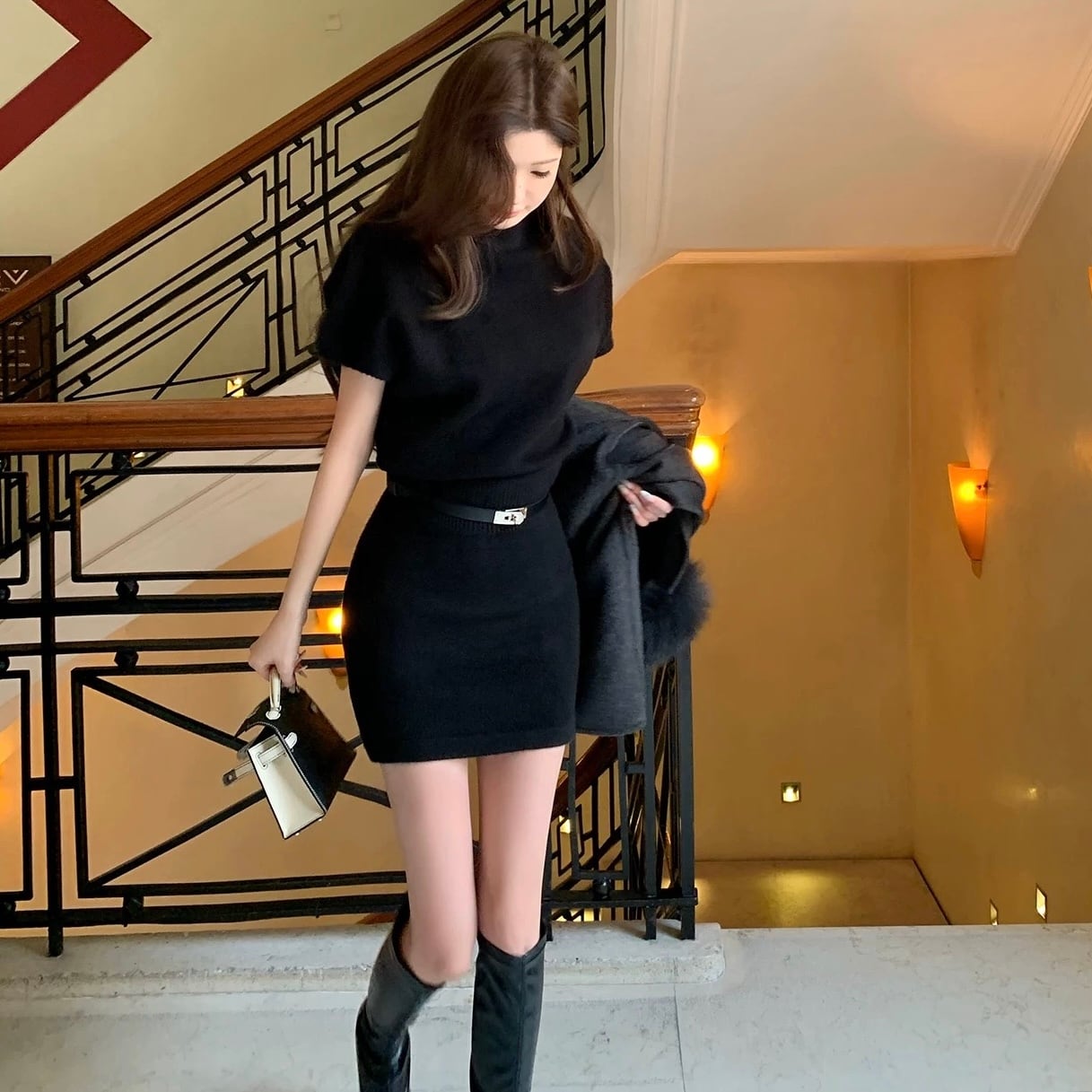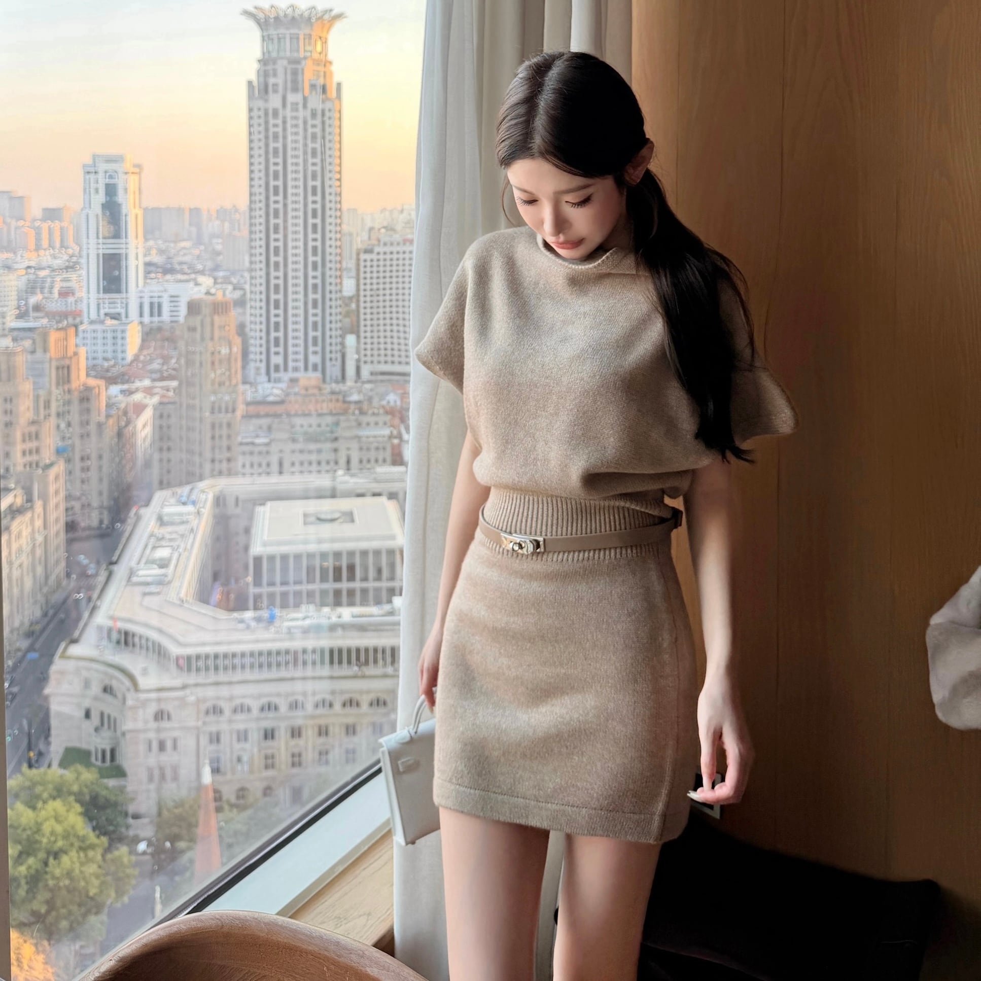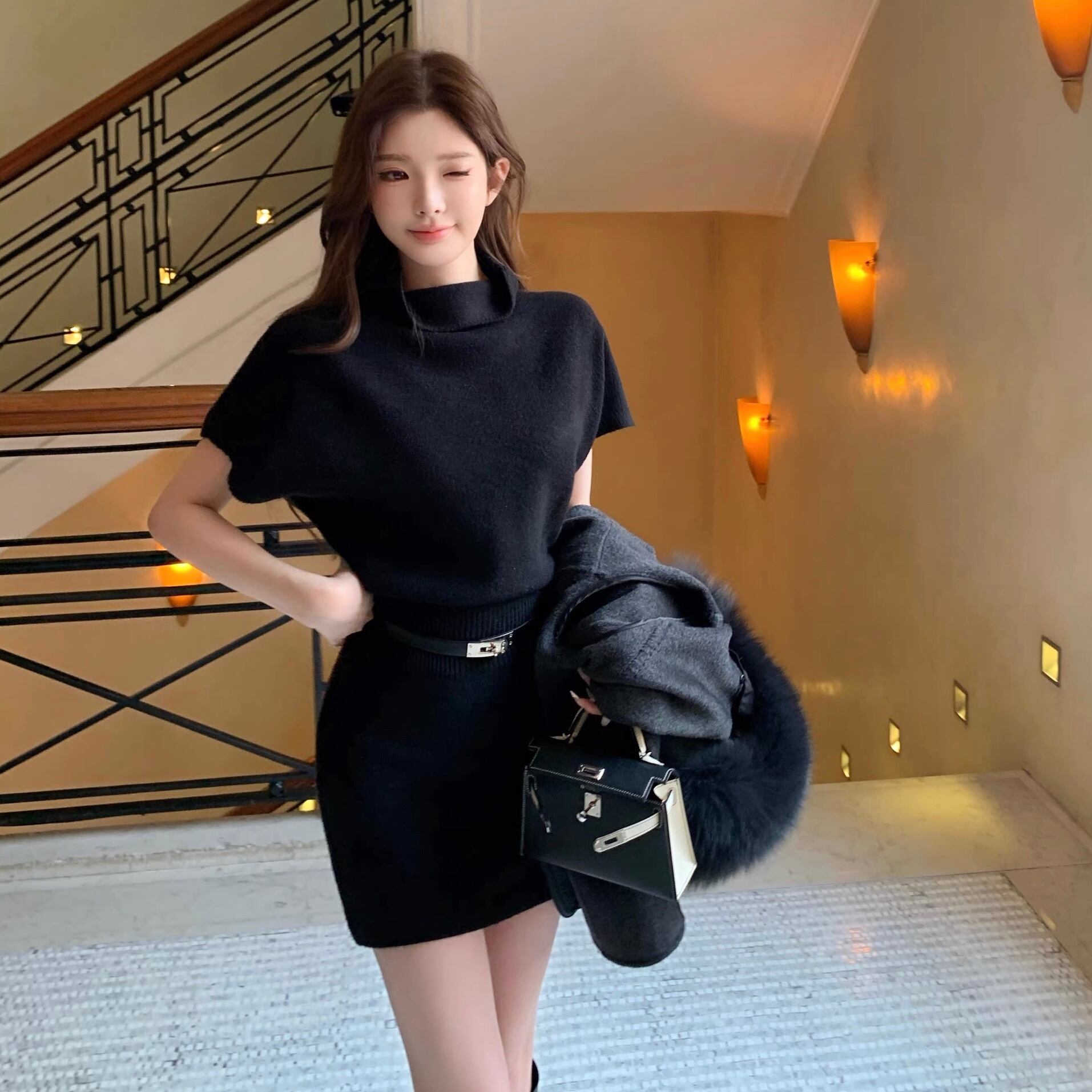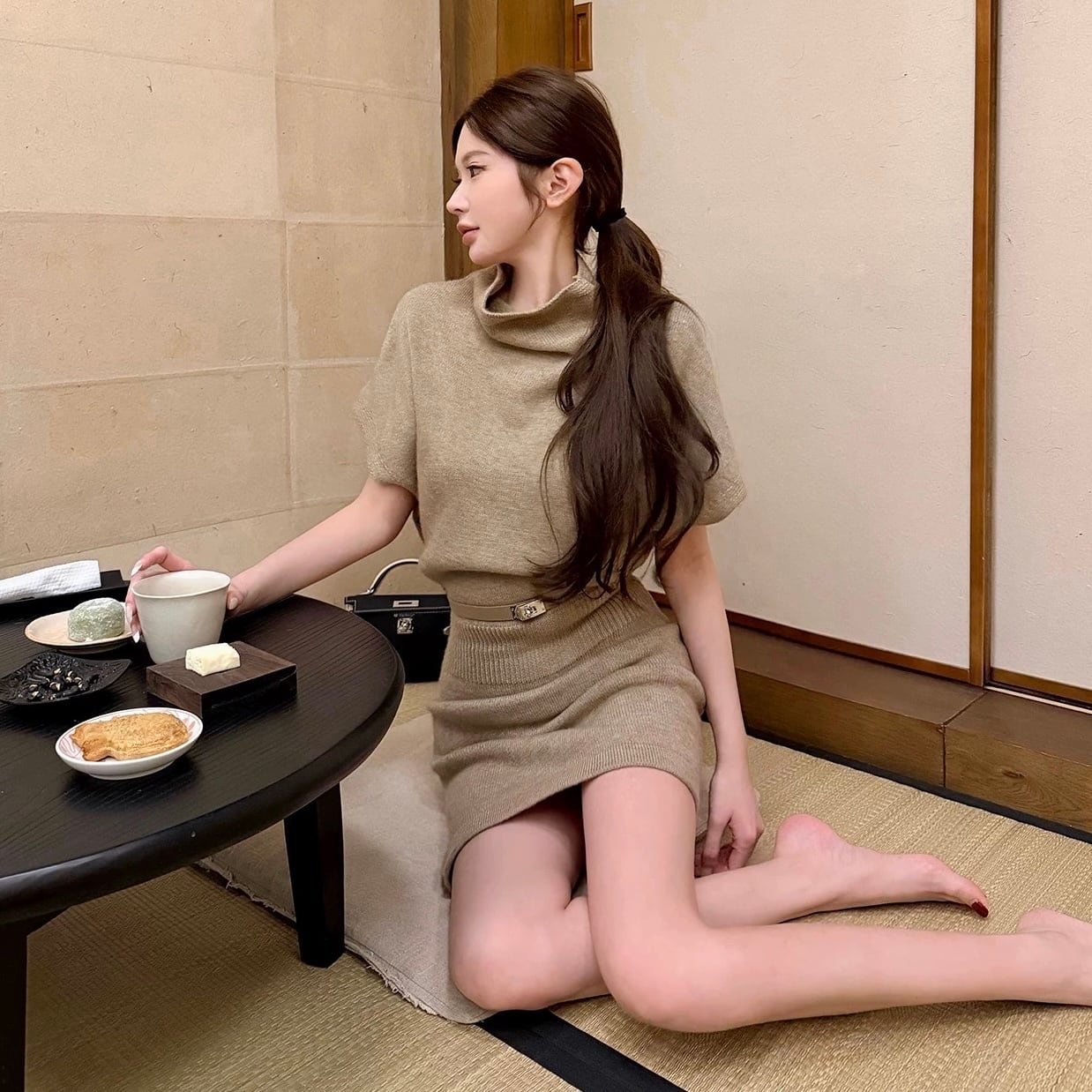 high neck belt one piece