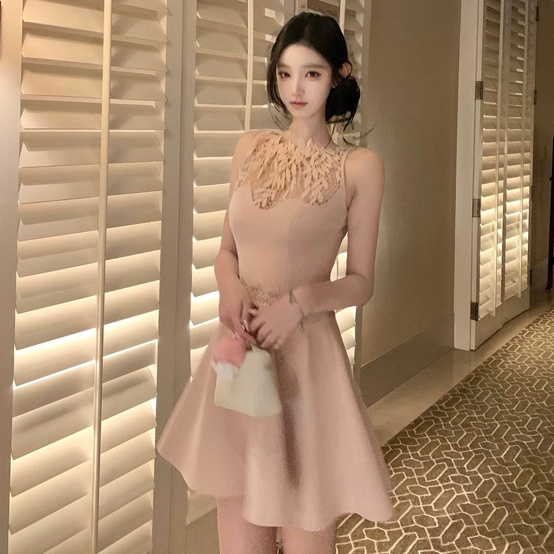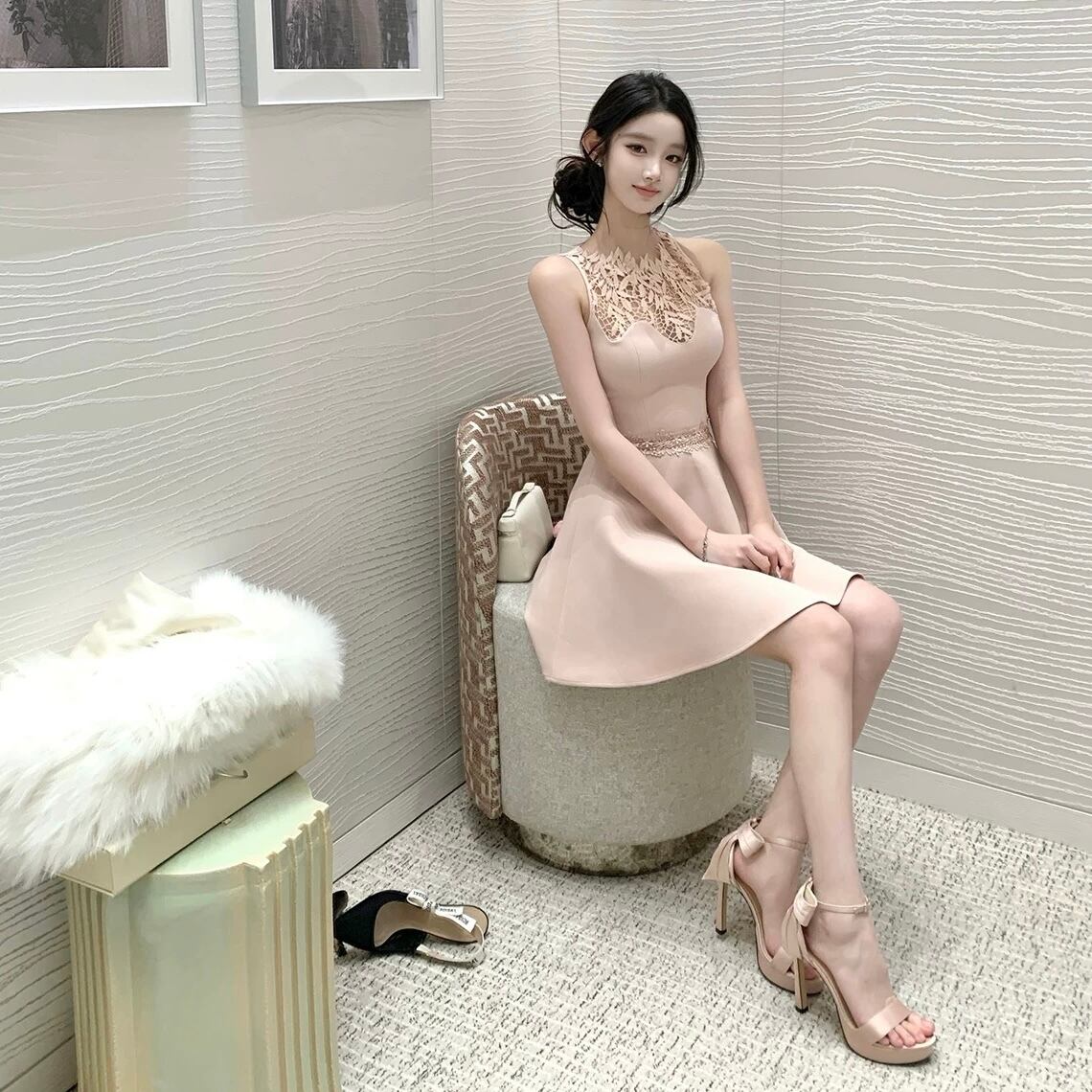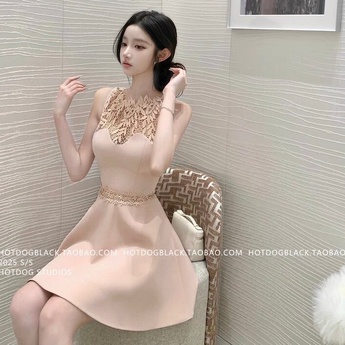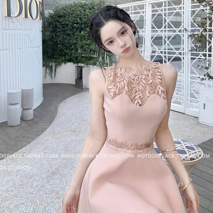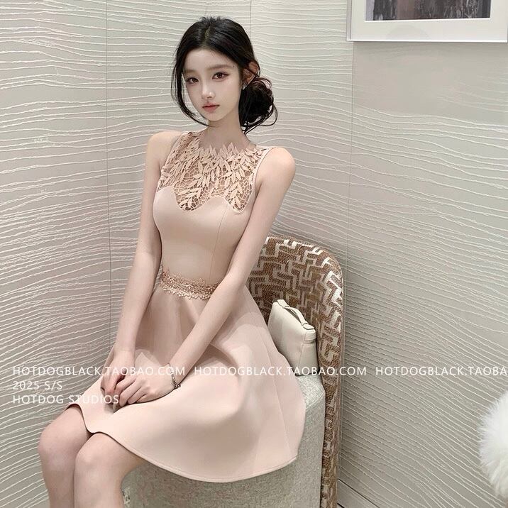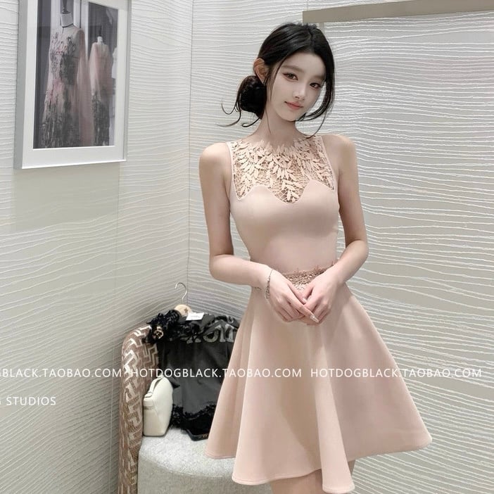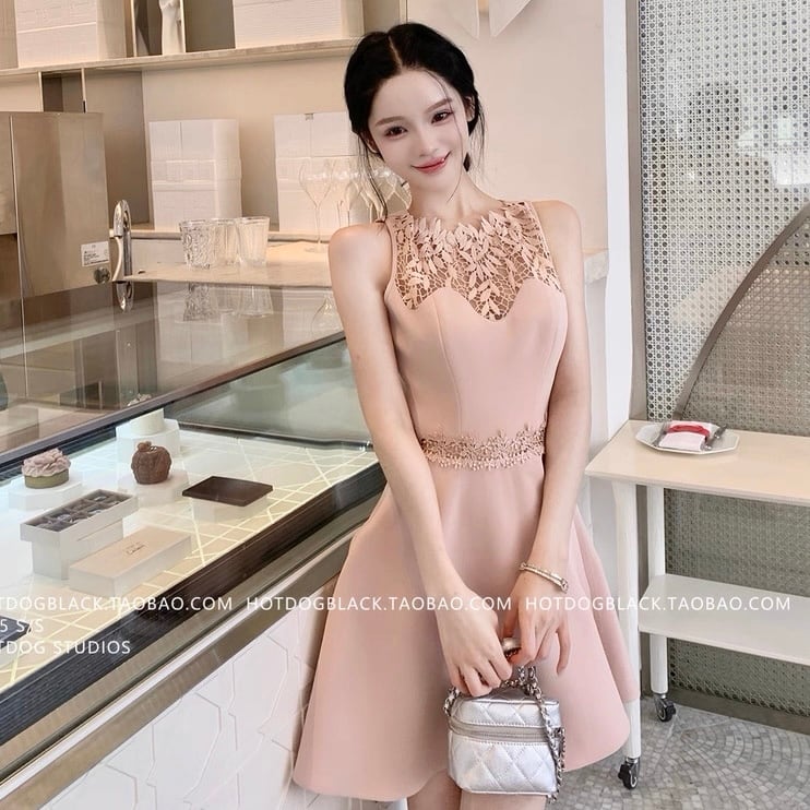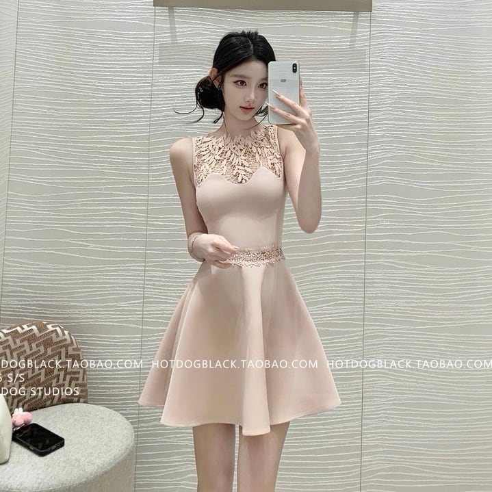 patchwork lace flare one piece