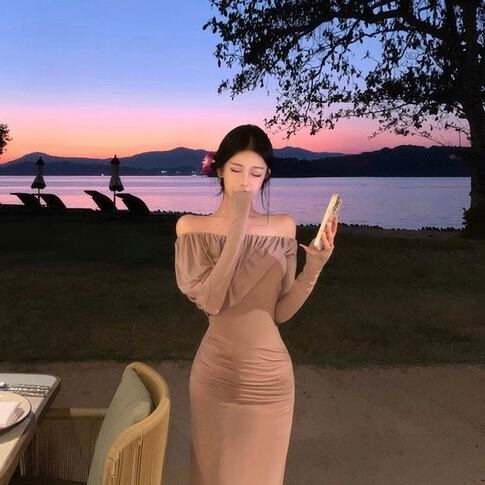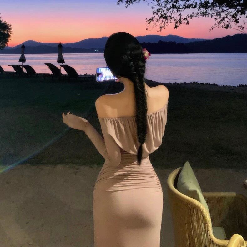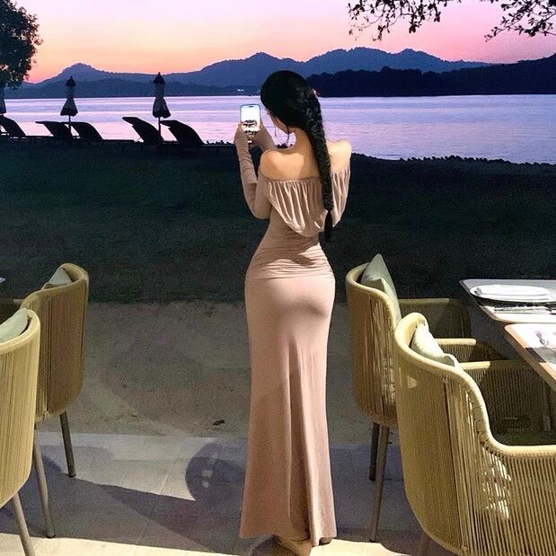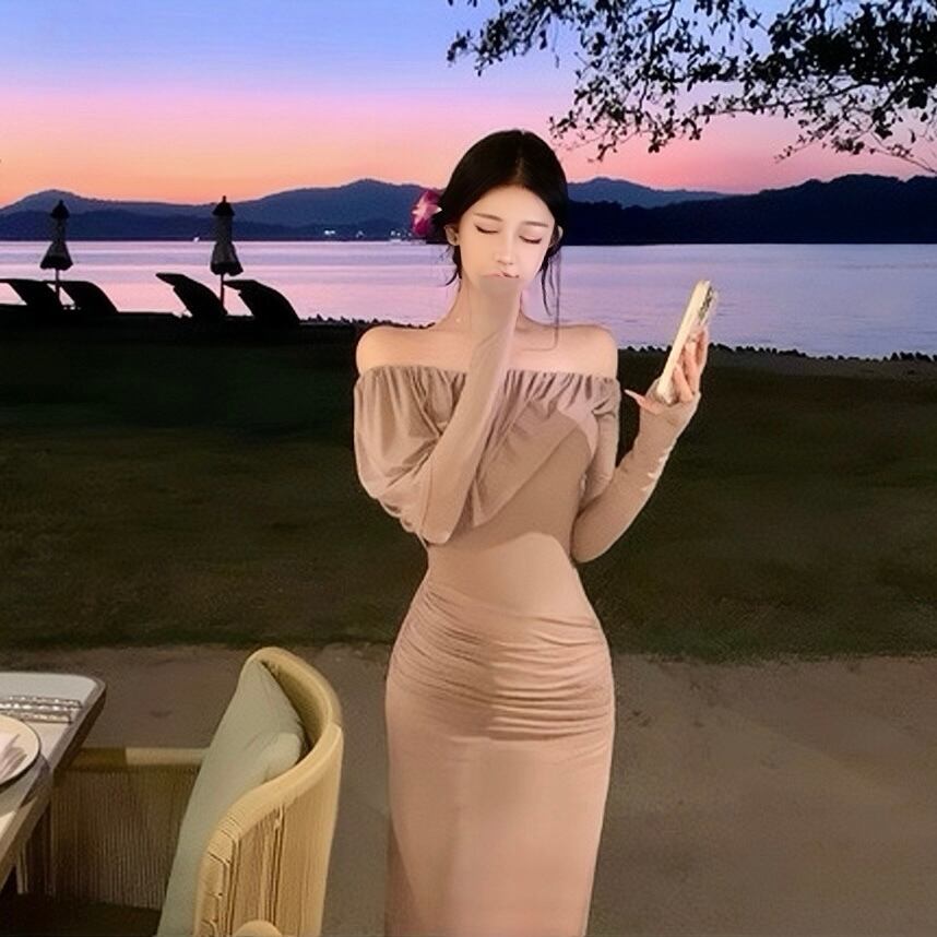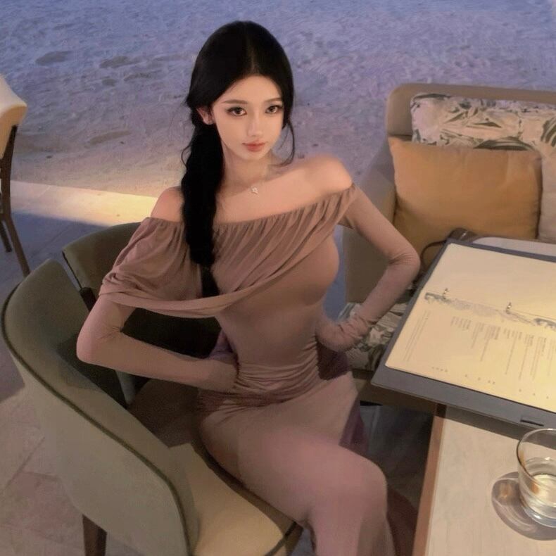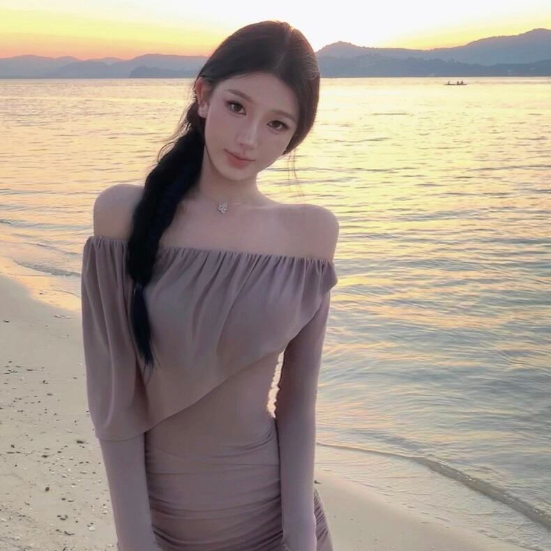 Off-shoulder slim fit one piece