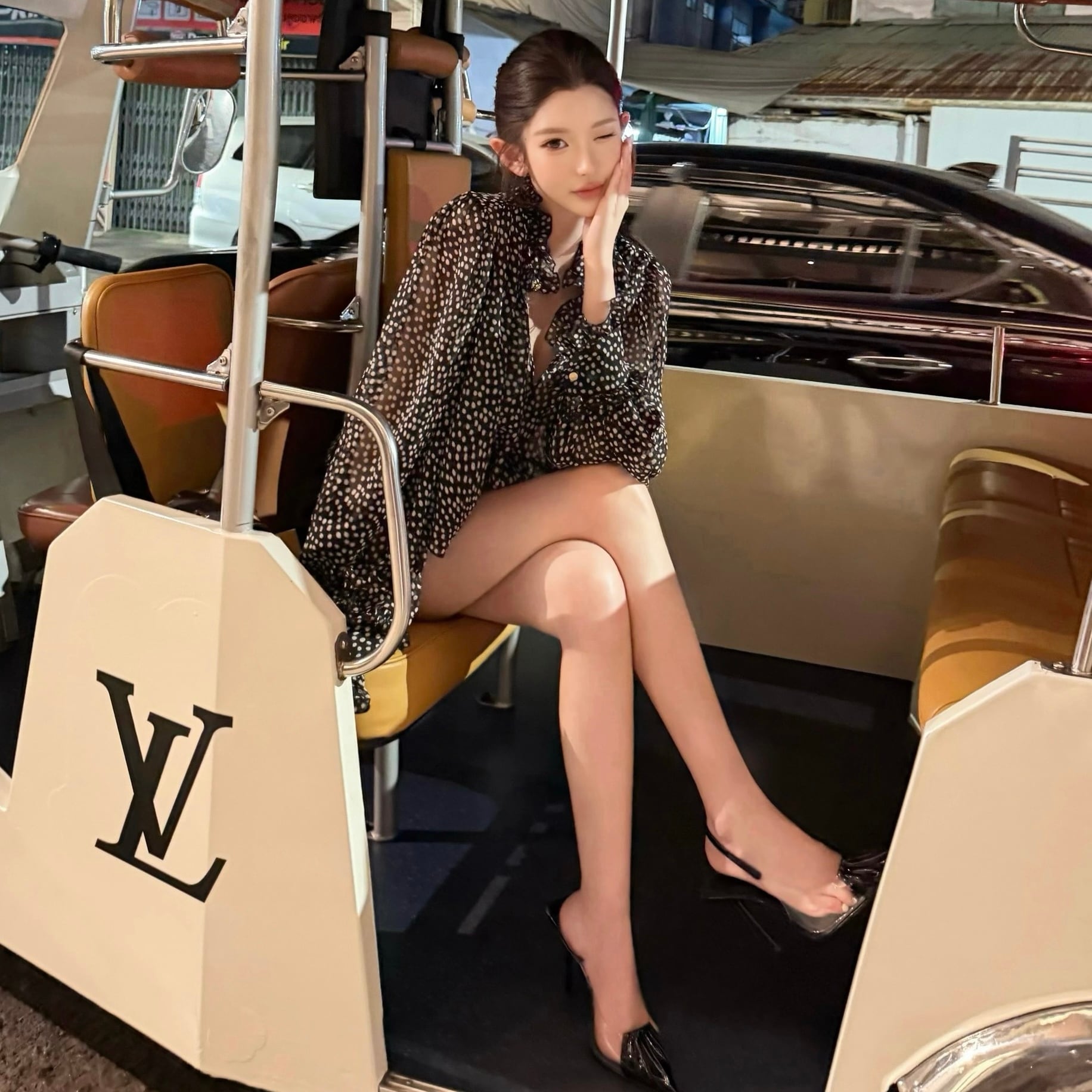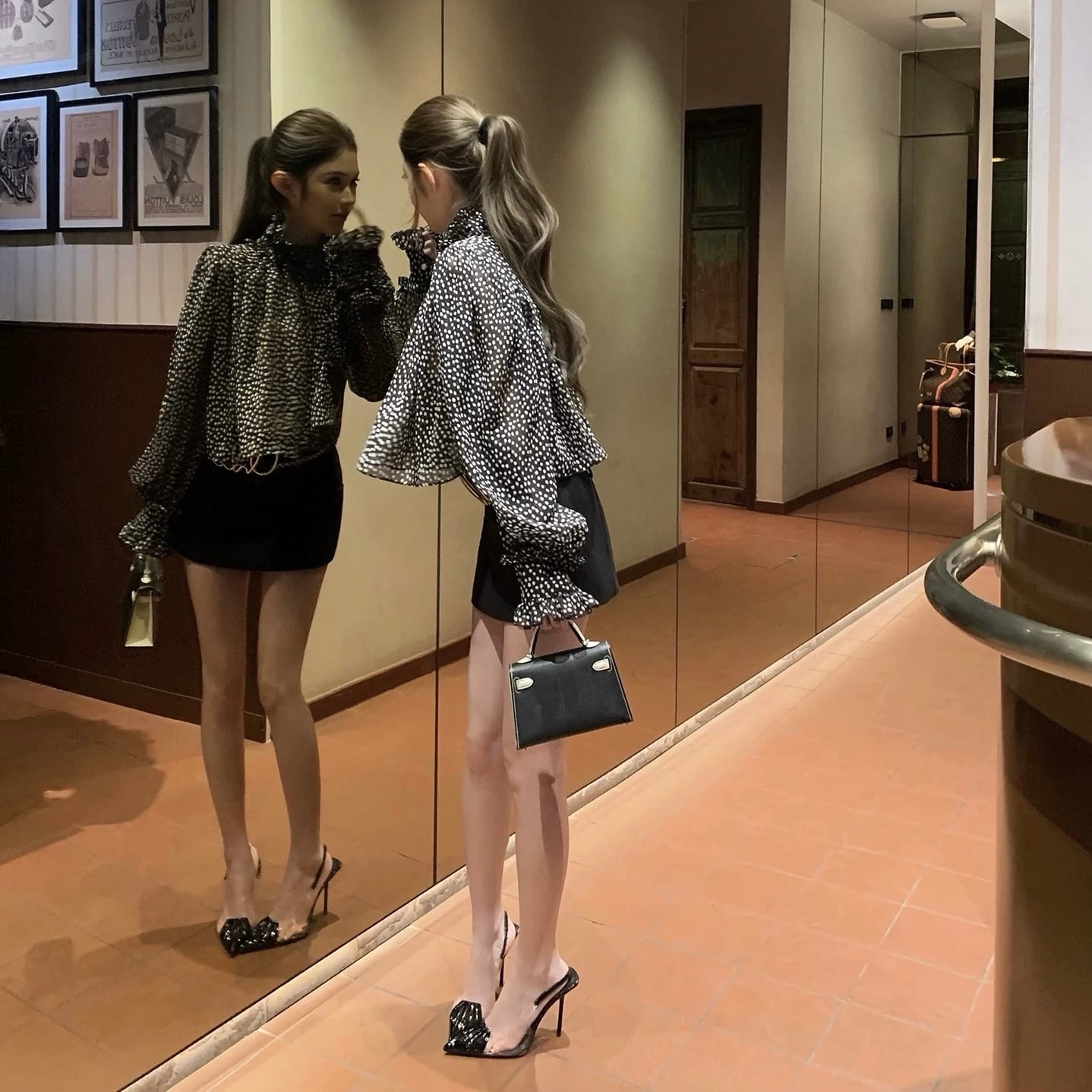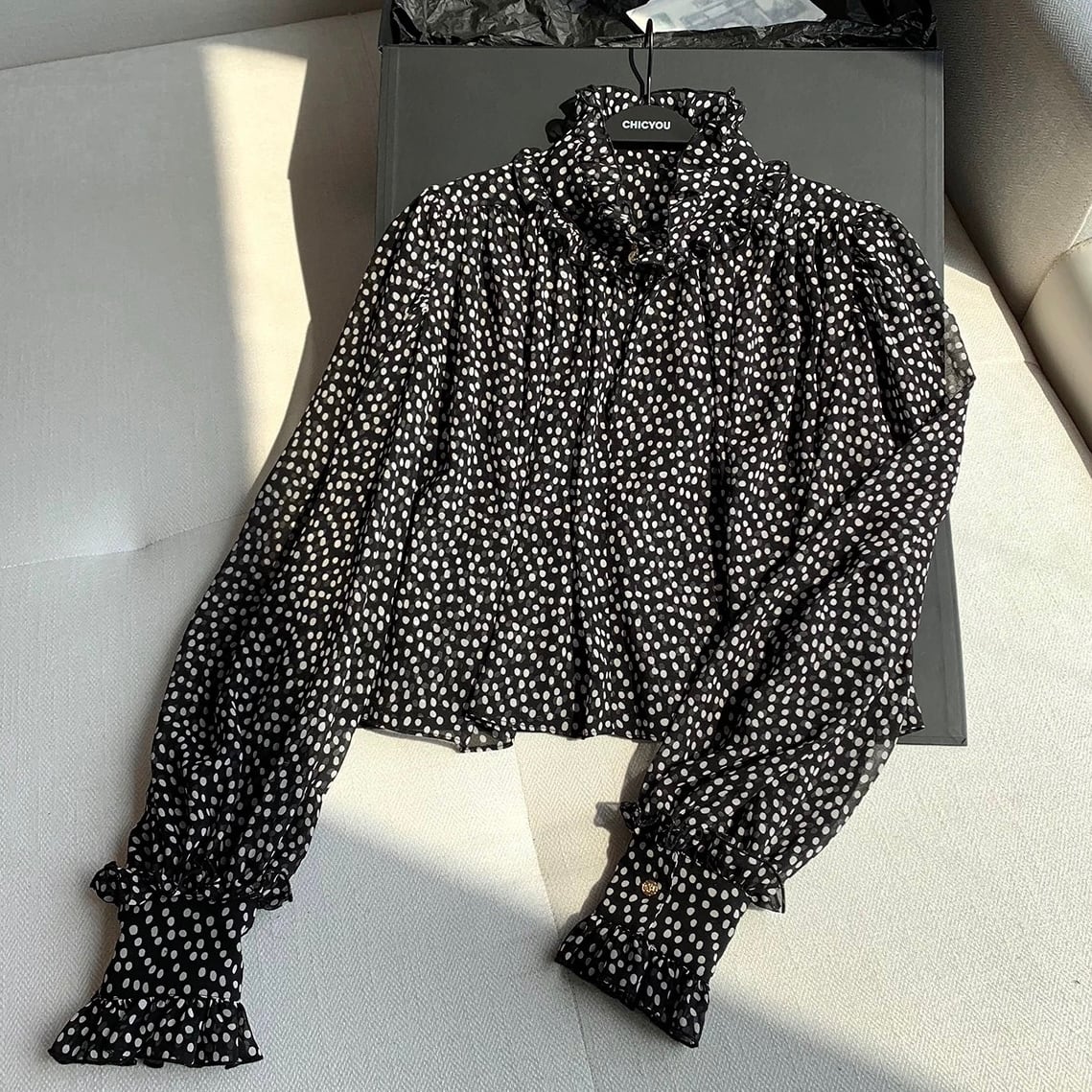 classical dot sheer blouse