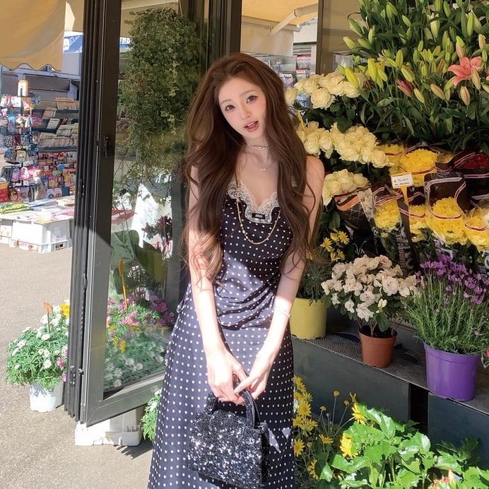 dot satin camisole setup