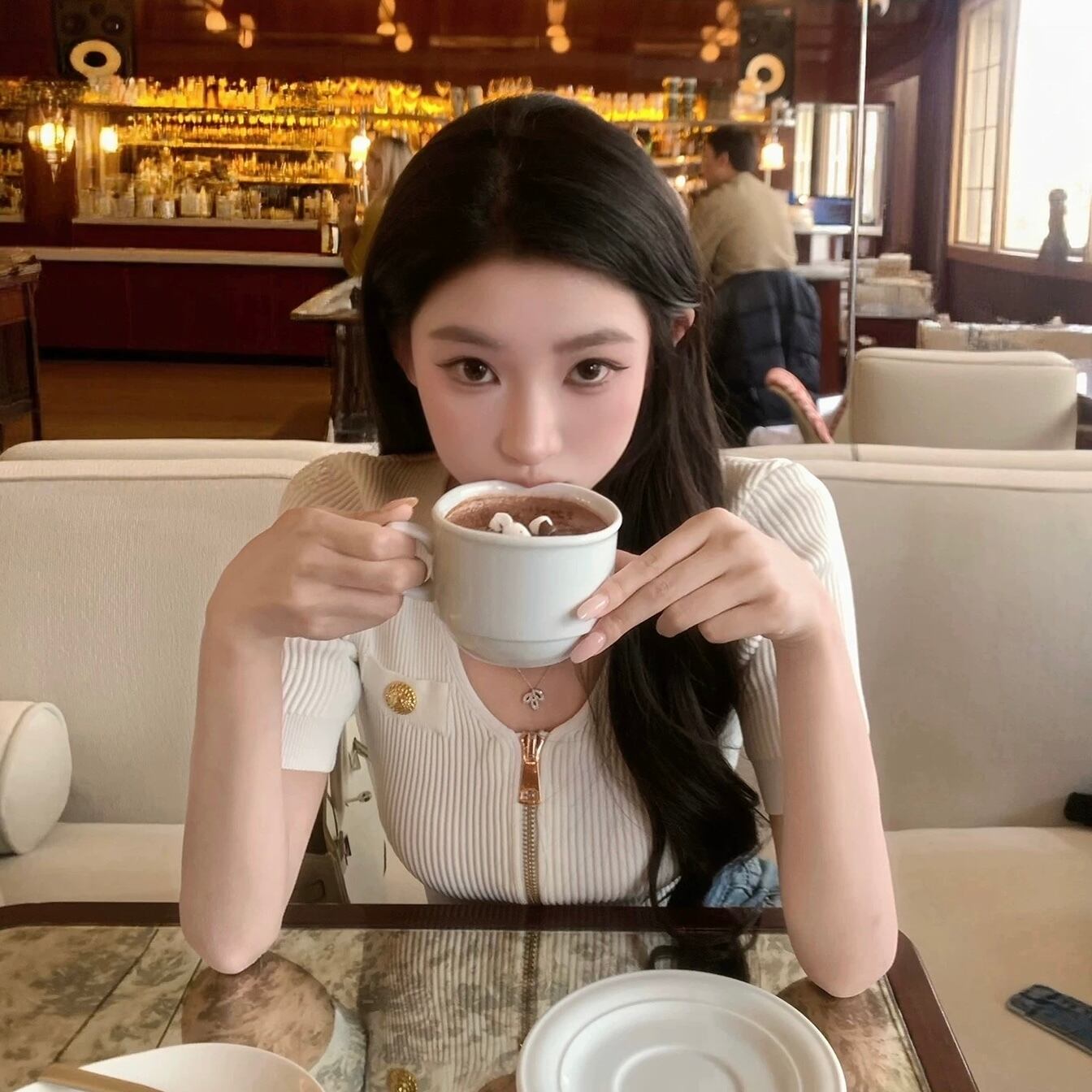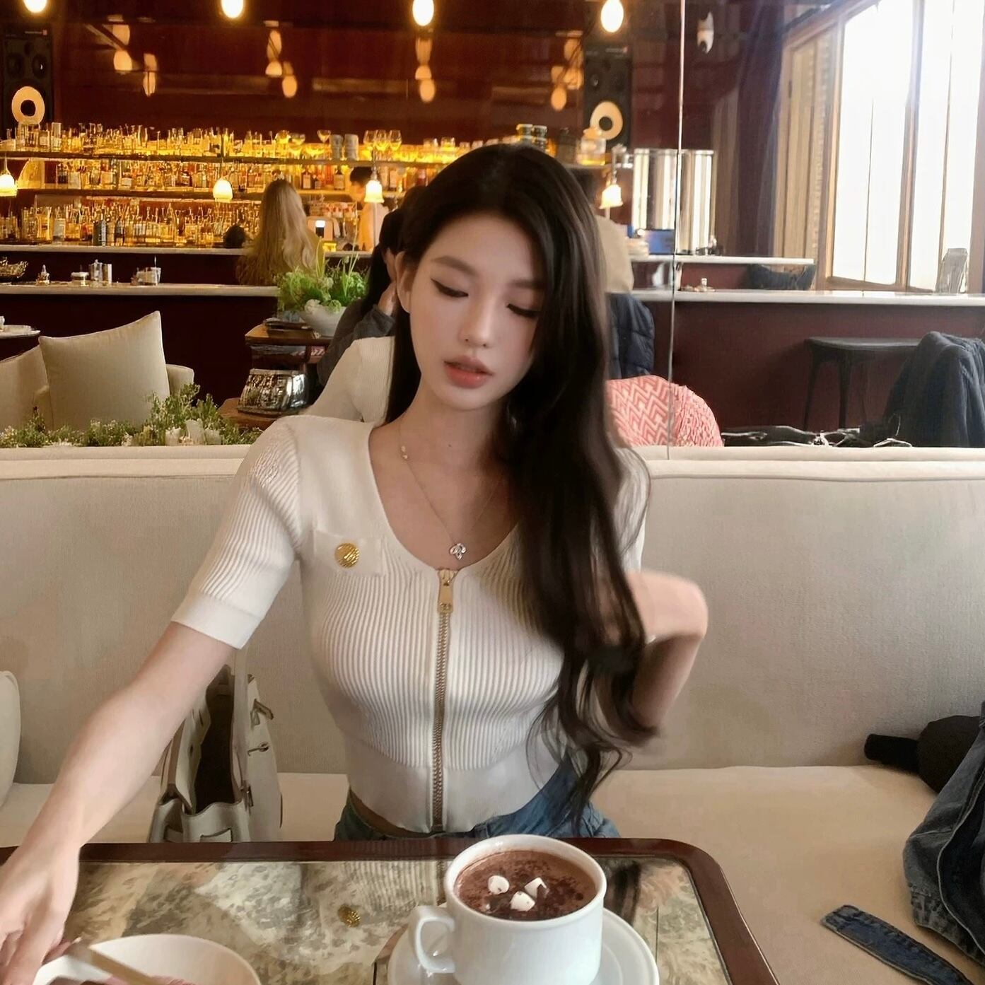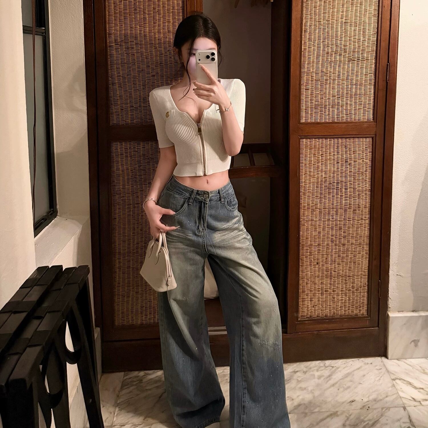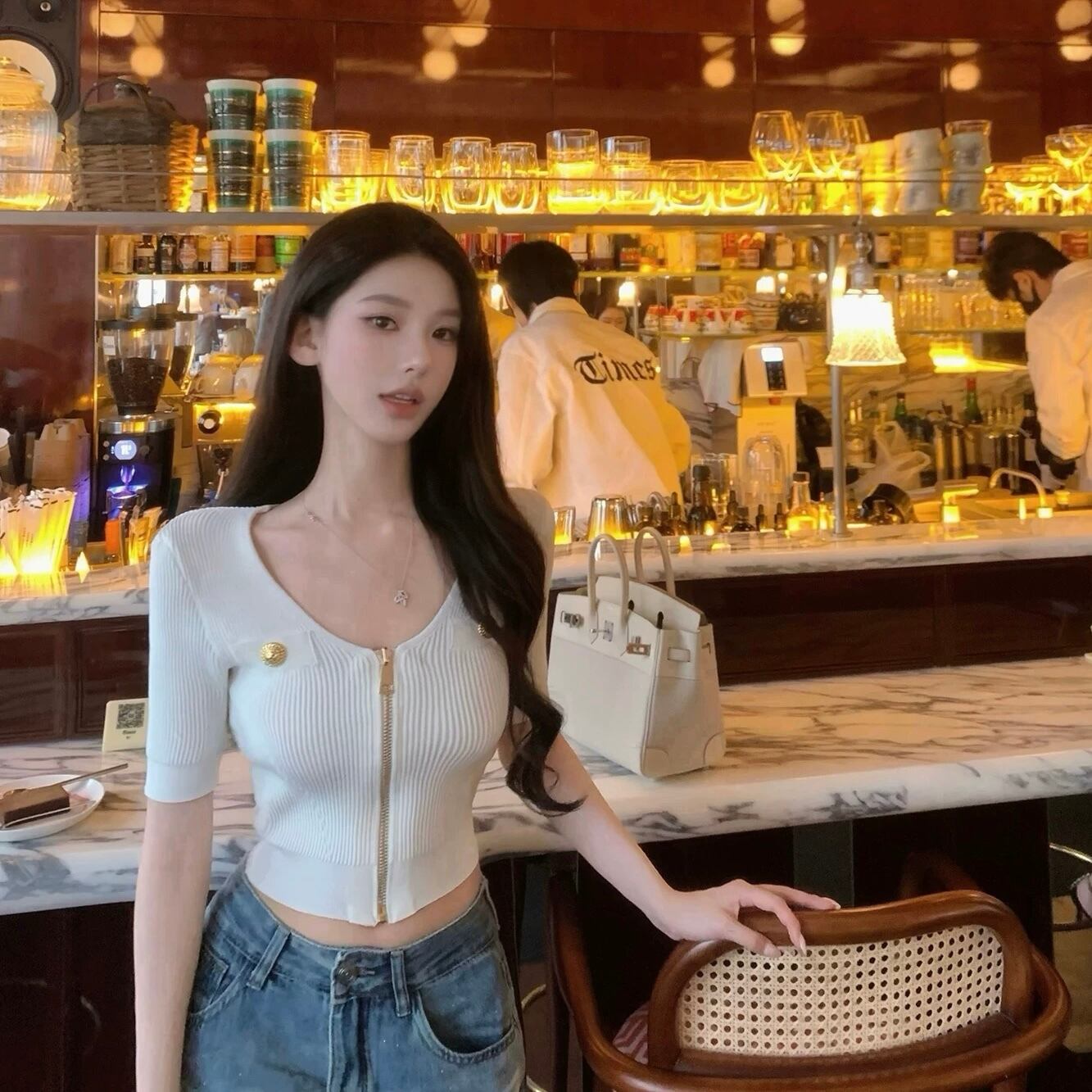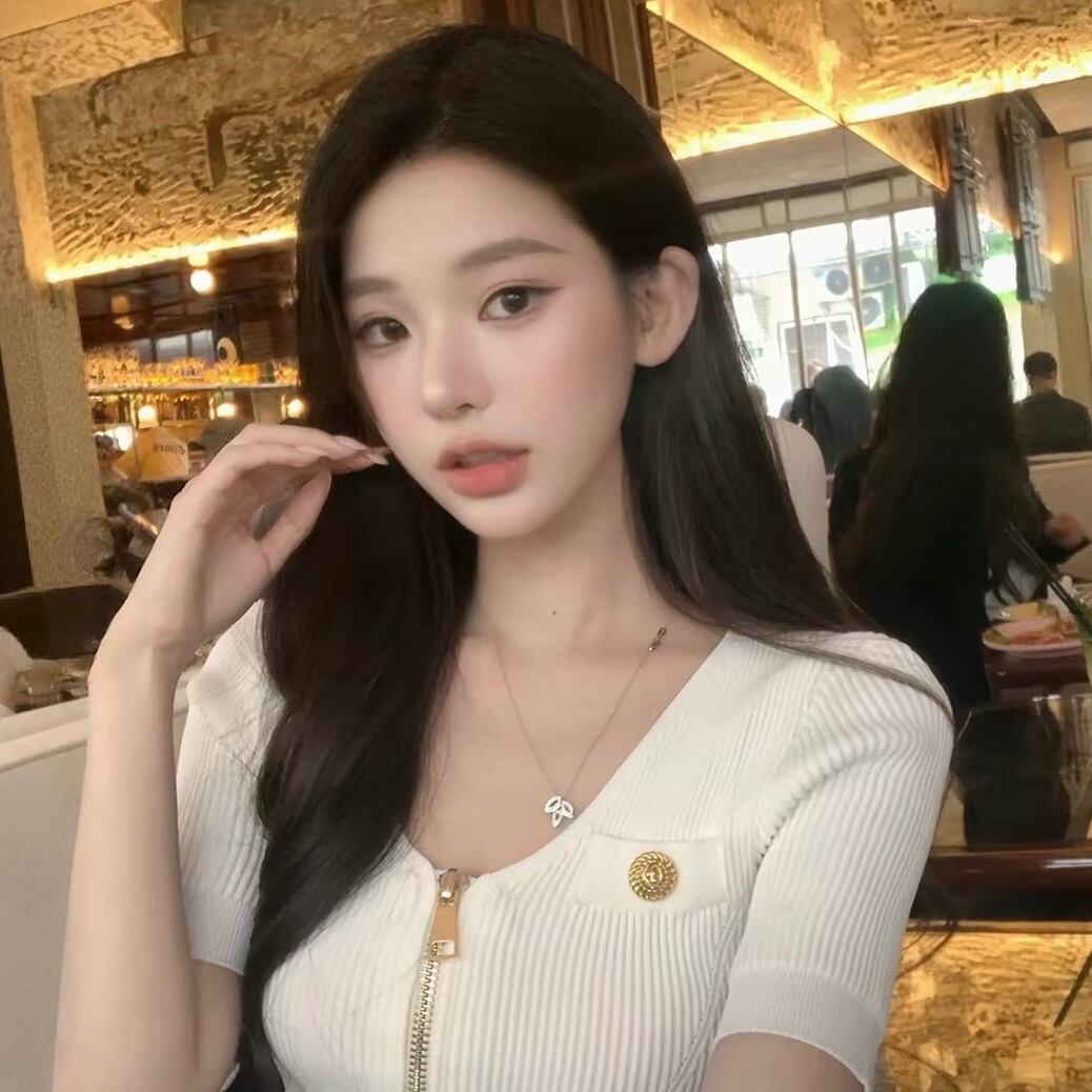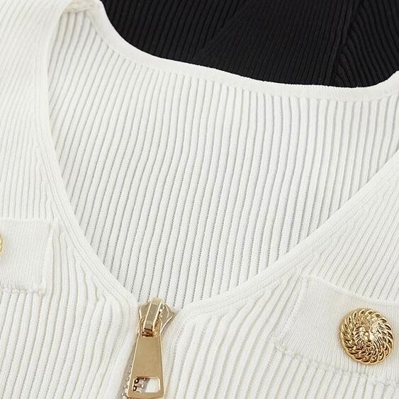 front zip rib knit top